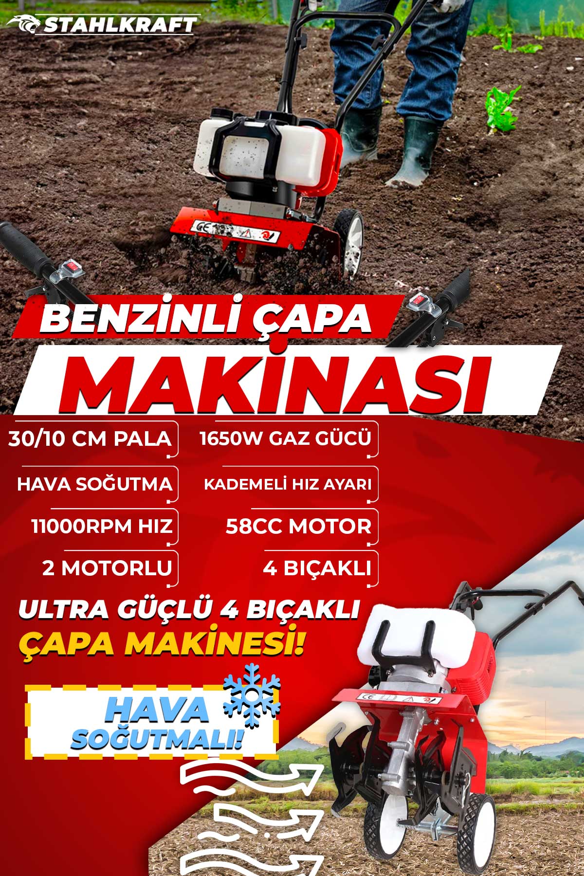 Stahlkraft Ultra Güçlü 4 Bıçaklı Benzinli Çapa makinası ile tarla , bahçe , çapa işleri arttık çok pratik